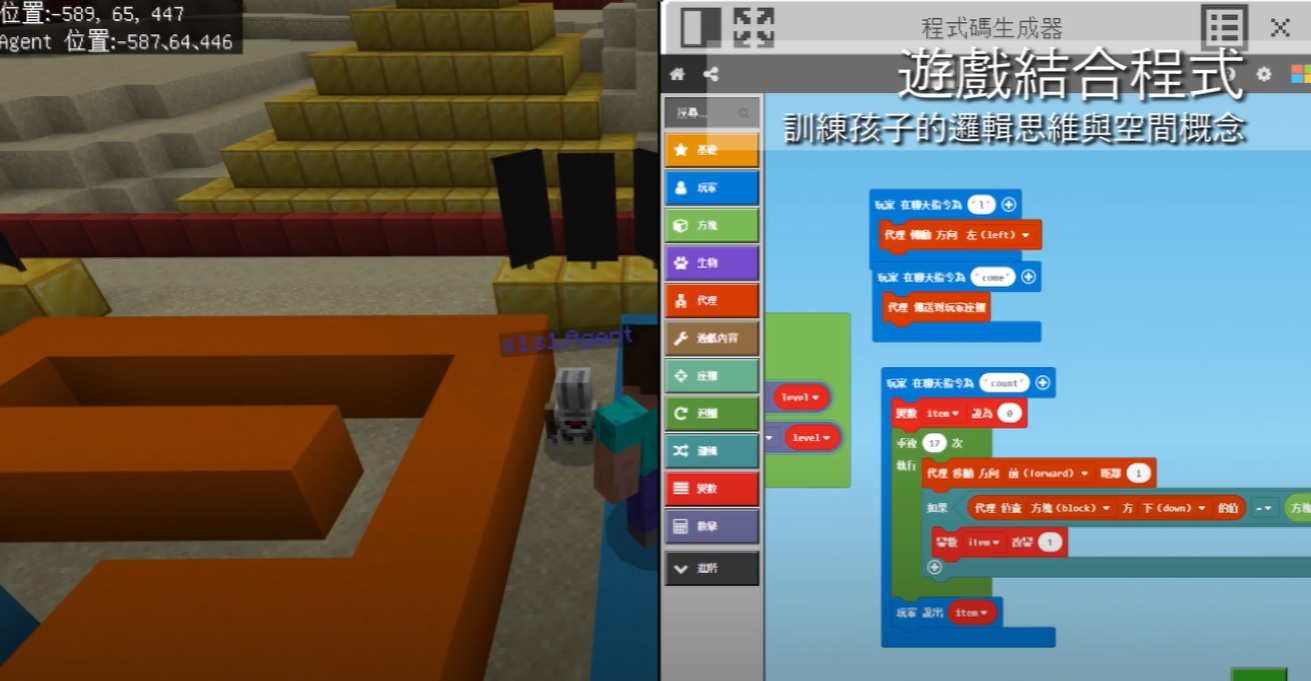◎本課程將程式教學與 Minecraft 遊戲結合,秉持做中學、玩中學的理念,讓學童可以透過玩 Minecraft 學習程式並培養邏輯思維,比起一般課程,學童更容易專注於遊戲中,因此可以在無形中反覆練習邏輯思維與程式技巧,進而達成良好的學習成效,並在豐富的課程安中培養學童立體空間概念、建築美感設計與創意思考。