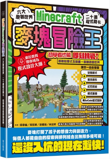 ★ 教材費500元 : 包含所有進行的遊戲世界模板、學習手冊與學習單、「麥塊Minecraft冒險王:六大原創世界,二十道程式關卡」出版書一本